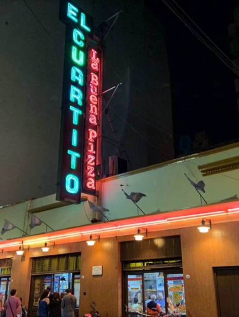 Si hay un clasico en el menu de los porteños, es la Pizza, asi es. Alejada de la calle corrientes, a mi parecer la mejor pizza indiscutible es “El cuartito”, donde siempre hay cola, pero si solo estas de paso podes comerte una porcion de fugazzeta en la barra, con una birra o un sifon de soda y seguir camino.